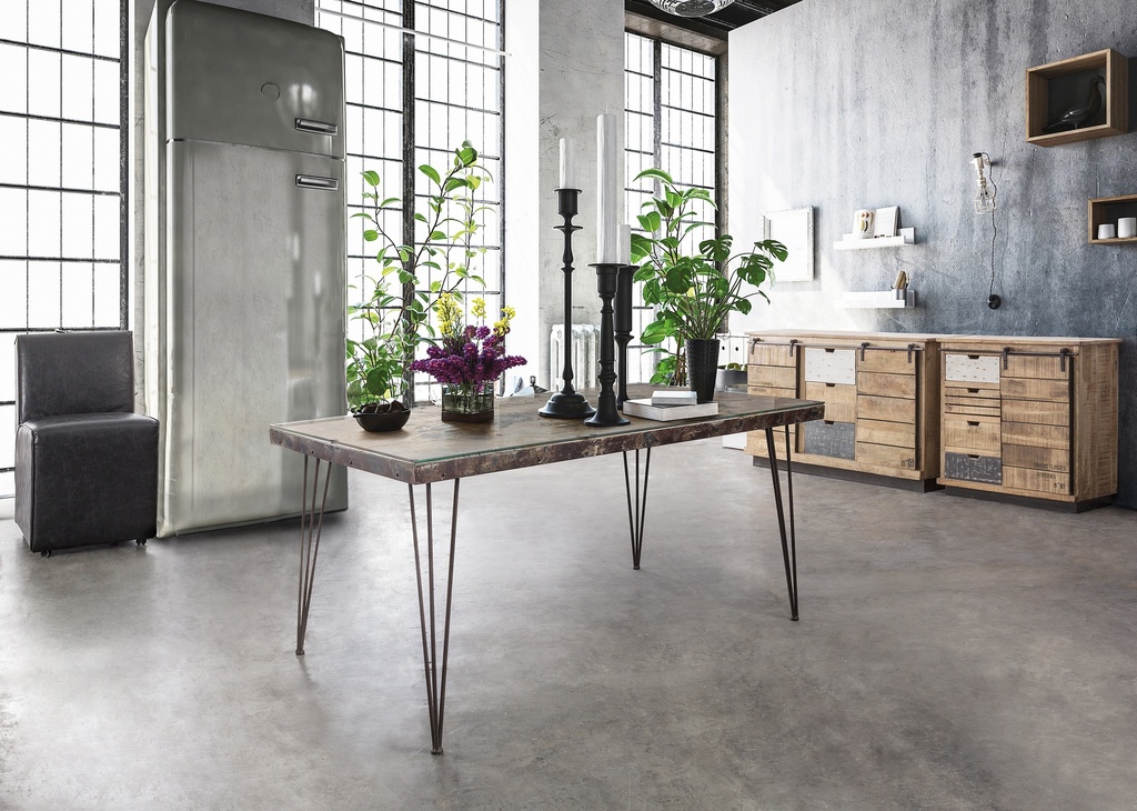 Matériaux : acier vieilli, mdf, ciment